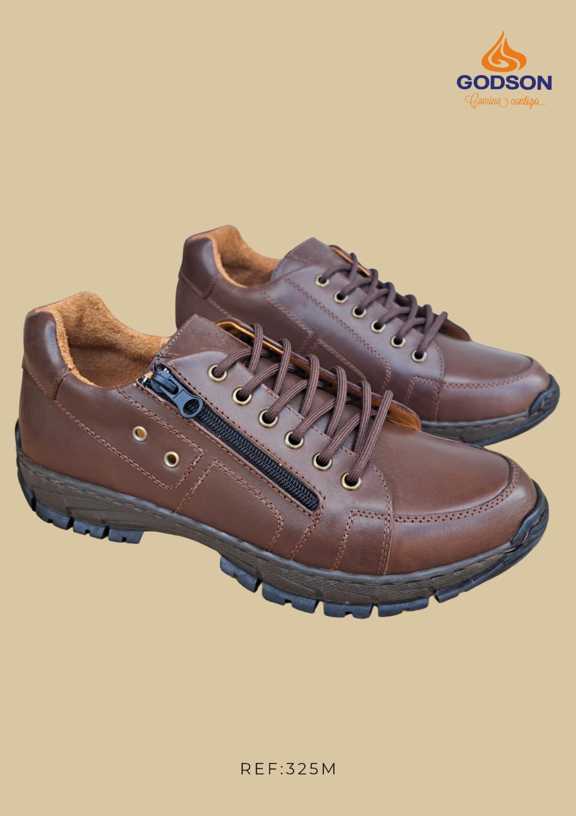 Zapatos casuales de cuero con doble ajuste: cordones y cierre lateral funcional. El equilibrio perfecto entre estilo artesanal y comodidad diaria.